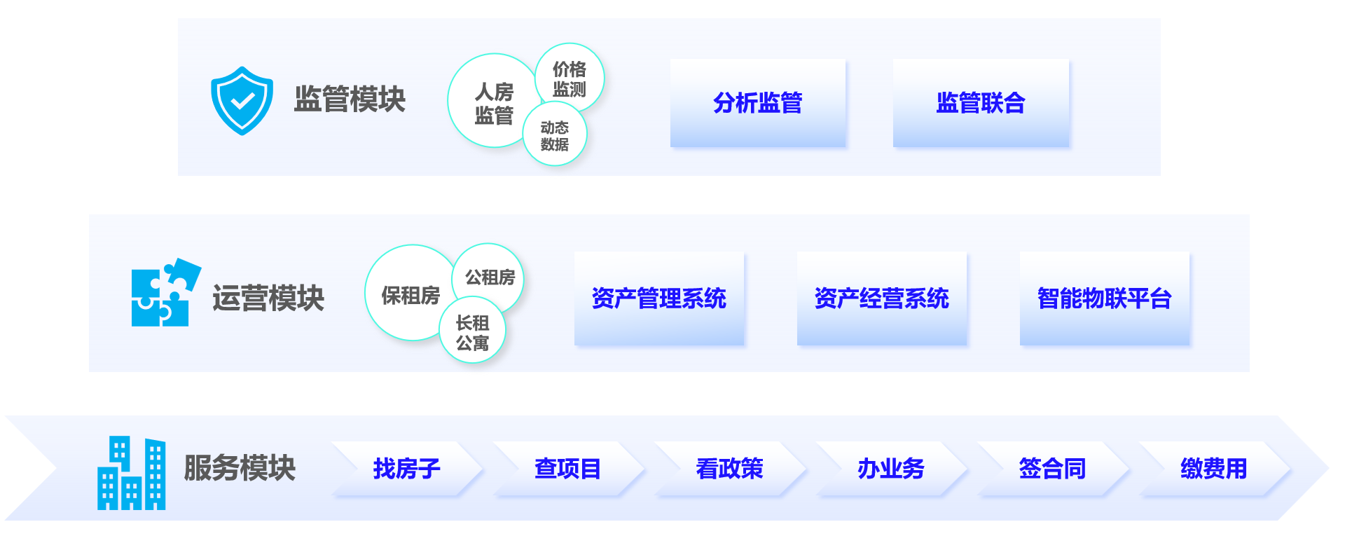 有效支撑保租房、公租房、长租公寓、配套住房等各类资产的租赁运营工作。覆盖租前项目管理、房源管理及监管,租中在线签约、合同管理,租后账单提醒、报事报修管理监督、智能门锁集成等方面的“云上管理”,形成过程可追溯、数据可校验、服务可感知的闭环管理生态。